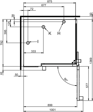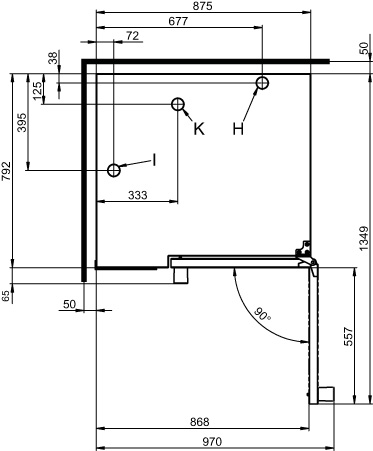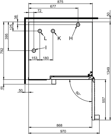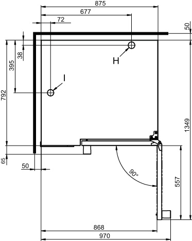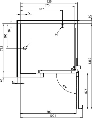 * Distanz abhängig vom Auszug der Gerätefüße (max. +25 mm)