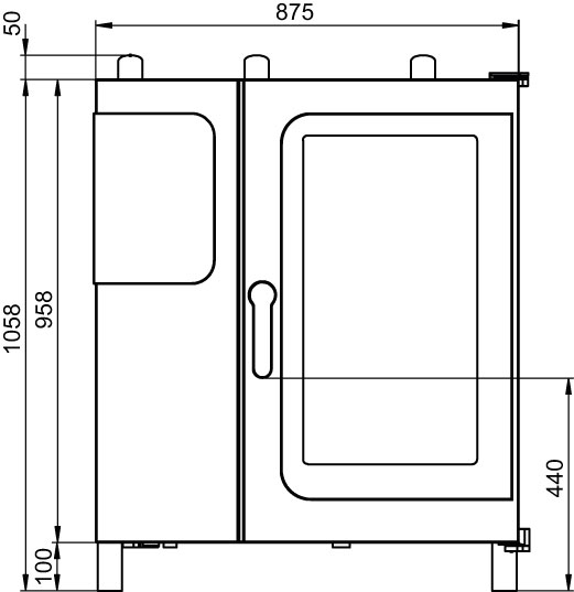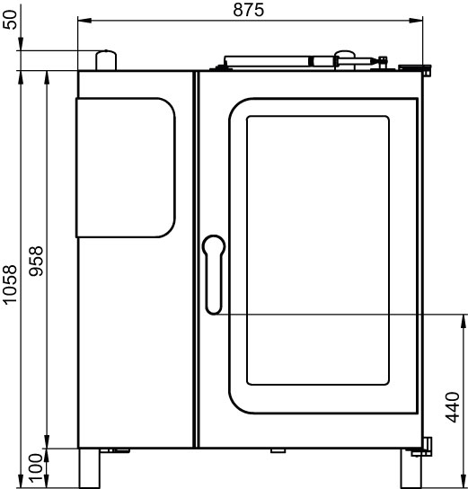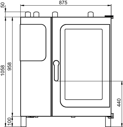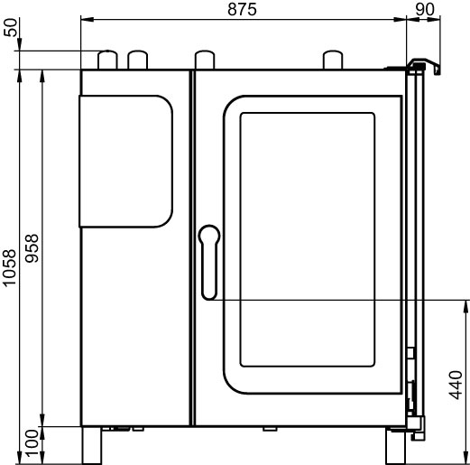 Convotherm maxx pro 10.10 - Abmessungen und Anschlusspositionen