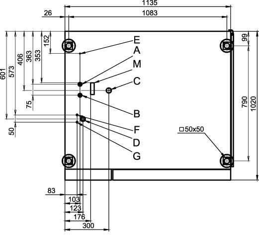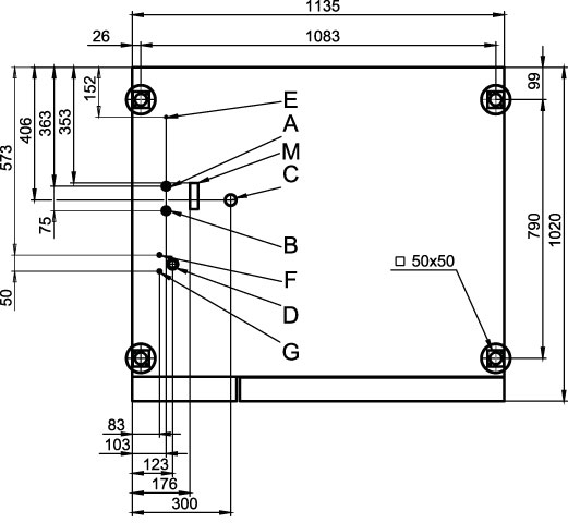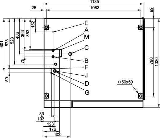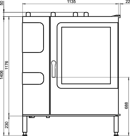 Convotherm 4 12.20 - Abmessungen und Anschlusspositionen