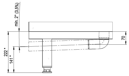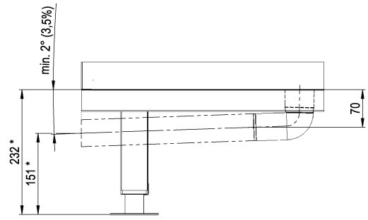 * Distanz abhängig vom Auszug der Gerätefüße (max. +25 mm)