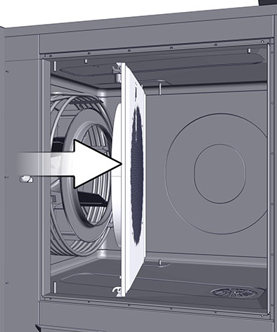 Schwenken Sie das Ansaugblech in den Garraum. |