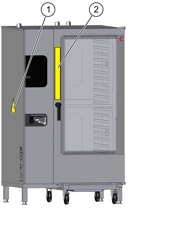 Die folgenden Warnhinweise müssen immer gut sichtbar auf dem Kombidämpfer und dem Zubehör in den gekennzeichneten Bereichen angebracht sein.