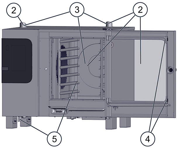 Im gesamten Garraum, inkl. aller Teile, die sich während des Garbetriebs innen befinden oder befunden haben