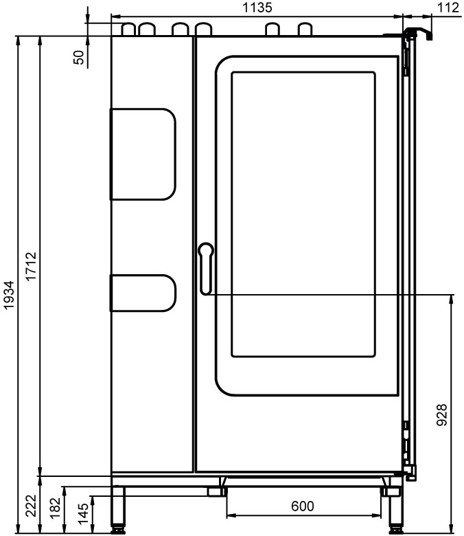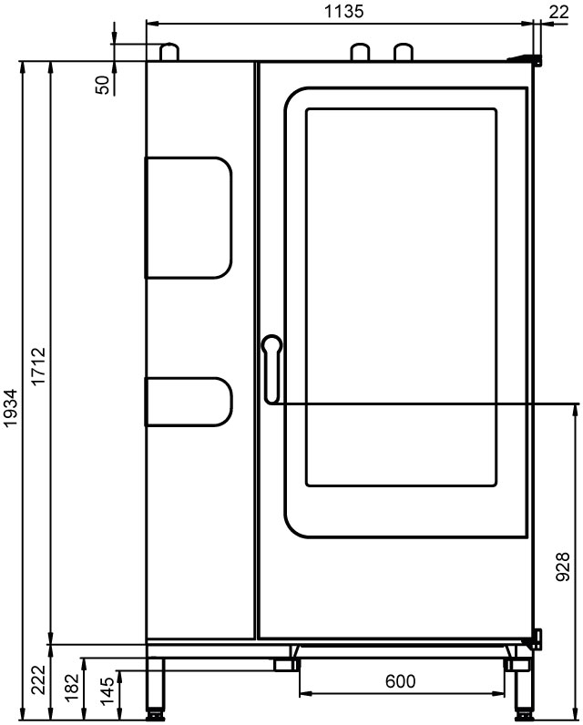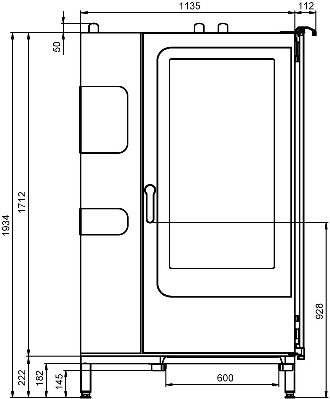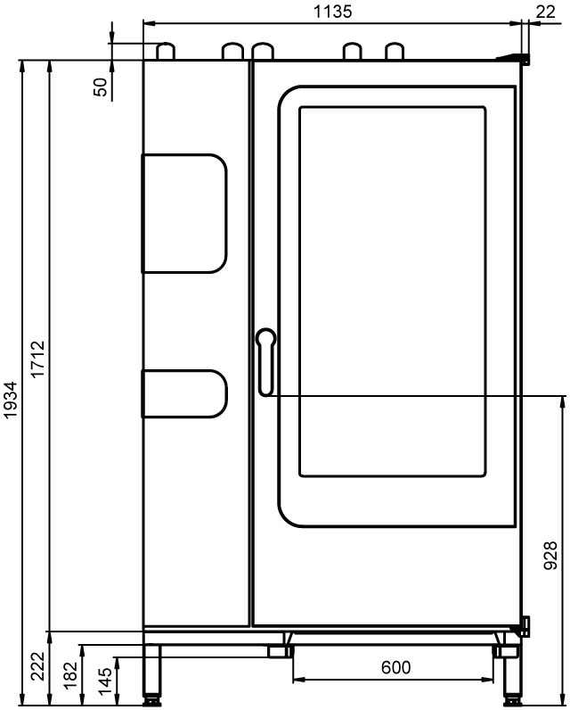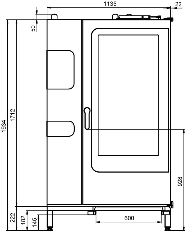 Convotherm maxx pro 20.20 - Abmessungen und Anschlusspositionen