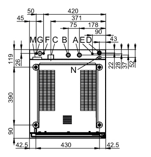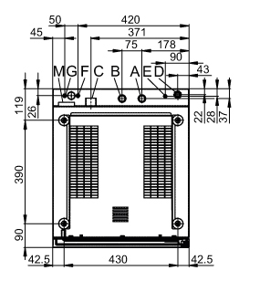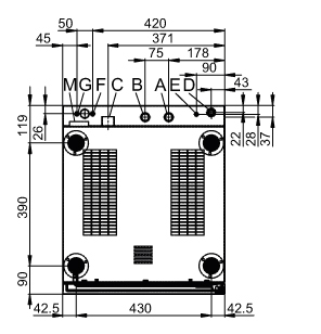 | Draufsicht mit Wandabständen | Anschlüsse an der Unterseite | |