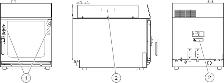 Die folgenden Warnhinweise müssen immer gut sichtbar auf dem Kombidämpfer und dem optionalen Zubehör in den gekennzeichneten Bereichen angebracht sein: